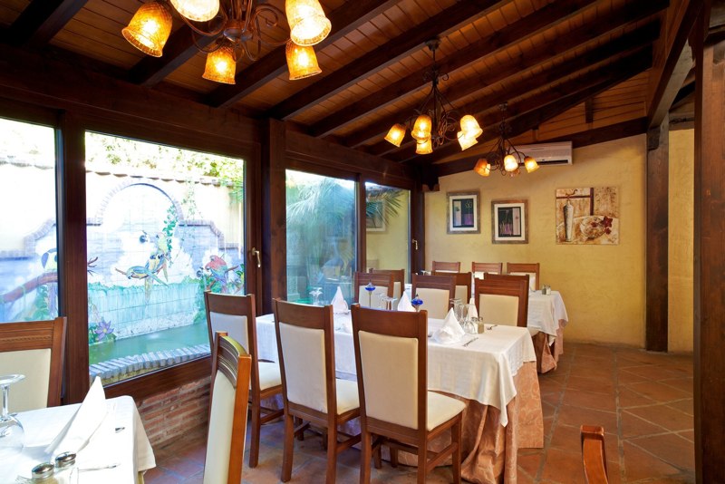 Don’t be put off by the exterior, once inside, it opens up to reveal a really rustic Spanish decor, like being in someone’s own dining room, with lots of little side areas and corners where you can dine in relative privacy if you wanted to. Years ago, there was a large outside terrace but a few years ago the owners enclosed the terrace and made a large water feature, which allowed them to seat more people inside during the winter whilst still giving an “outside” feel. If you still want to sit outside, there is a small terrace at the front of the restaurant.
