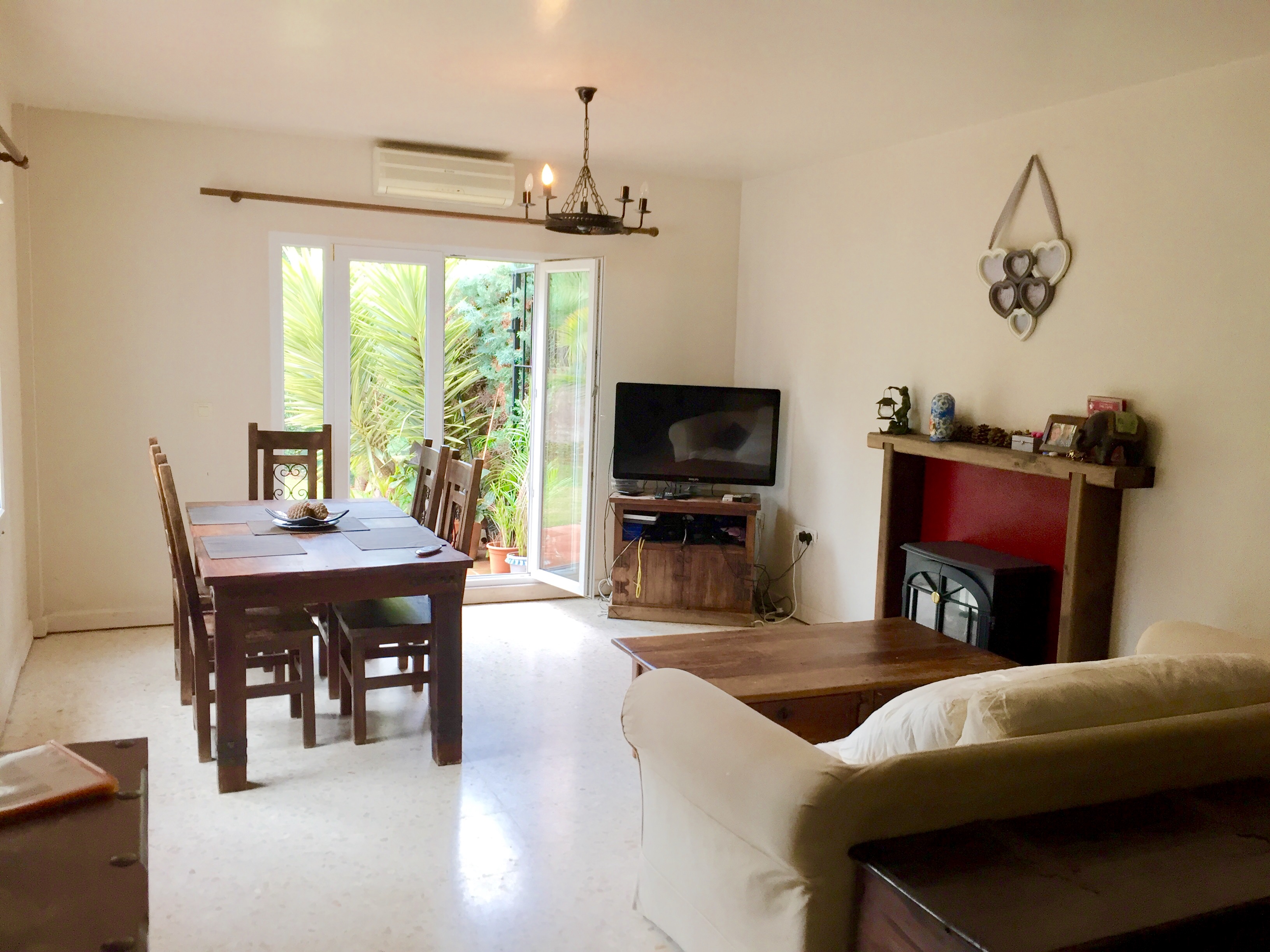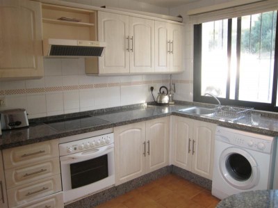 Das Haus ist auf zwei Ebenen aufgeteilt. Die erste Etage verfügt über eine Eingangshalle, eine Einbauküche, drei Schlafzimmer, zwei Bäder und ein Wohn- / Esszimmer, das auf einen großzügigen Garten führt. Die zweite Etage verfügt über einen Flur, eine große Sonnenterrasse mit Aussicht zum Gemeinschaftspool und zu den Gärten. Der eigene Garten führt zu den Gemeinschaftsgärten und dem Gemeinschaftspool. Das Haus verfügt über Klimaanlage und Einbauschränke.