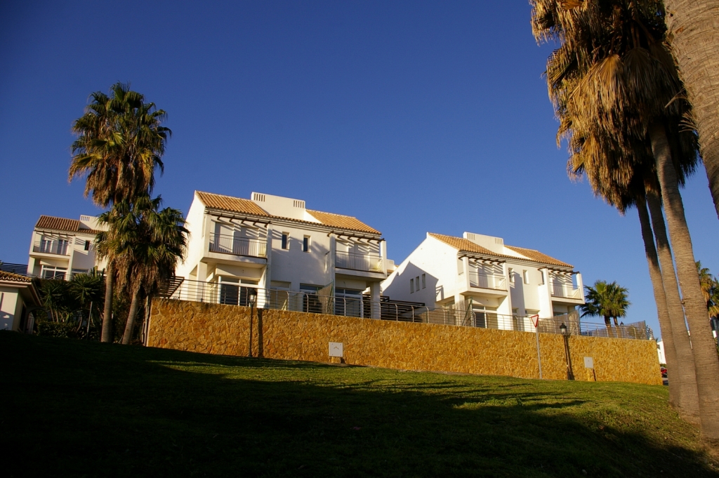 HH Schöne Doppelhaushälfte, auf einem sehr hohen Standard gebaut, ist ideal als Ferienhaus oder als Dauerwohnsitz geeignet. In wenigen Minuten erreichen Sie zu Fuß den schönen Strand und in einer 5-minütigen Autofahrt gelangen Sie zum Yachthafen von Duquesa und zum Duquesa Golfclub. Die Anlage besteht aus sechzehn Reihenhäusern mit wunderschönen Ausblicken auf den Hafen und das Meer. Die Häuser bestehen aus jeweils zwei Etagen. Im Erdgeschoss befindet sich ein großer Flurbereich, voll ausgestattete Küche eine Toilette, Hauswirtschaftsraum und ein Wohn- /Esszimmer mit Kamin und Blick auf den Garten. Auf der nächsten Etage haben Sie drei große Schlafzimmer mit Einbauschränken und zwei Bäder. Jedes Haus verfügt über einen eigenen Parkplatz. Die Urbanisation verfügt über einen gemeinsamen Pool und schöne Gärten.