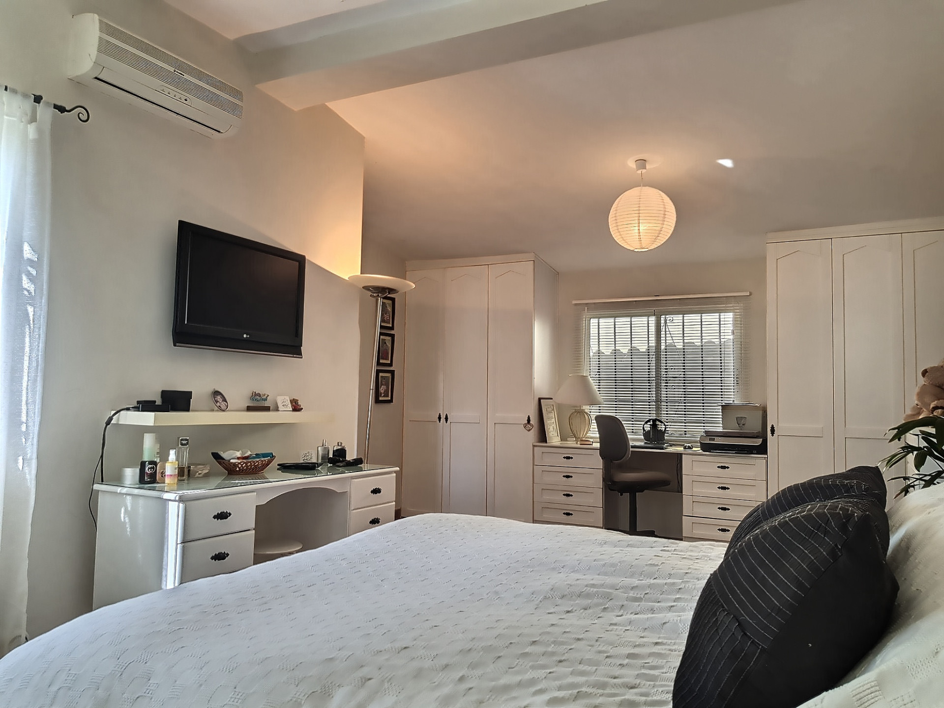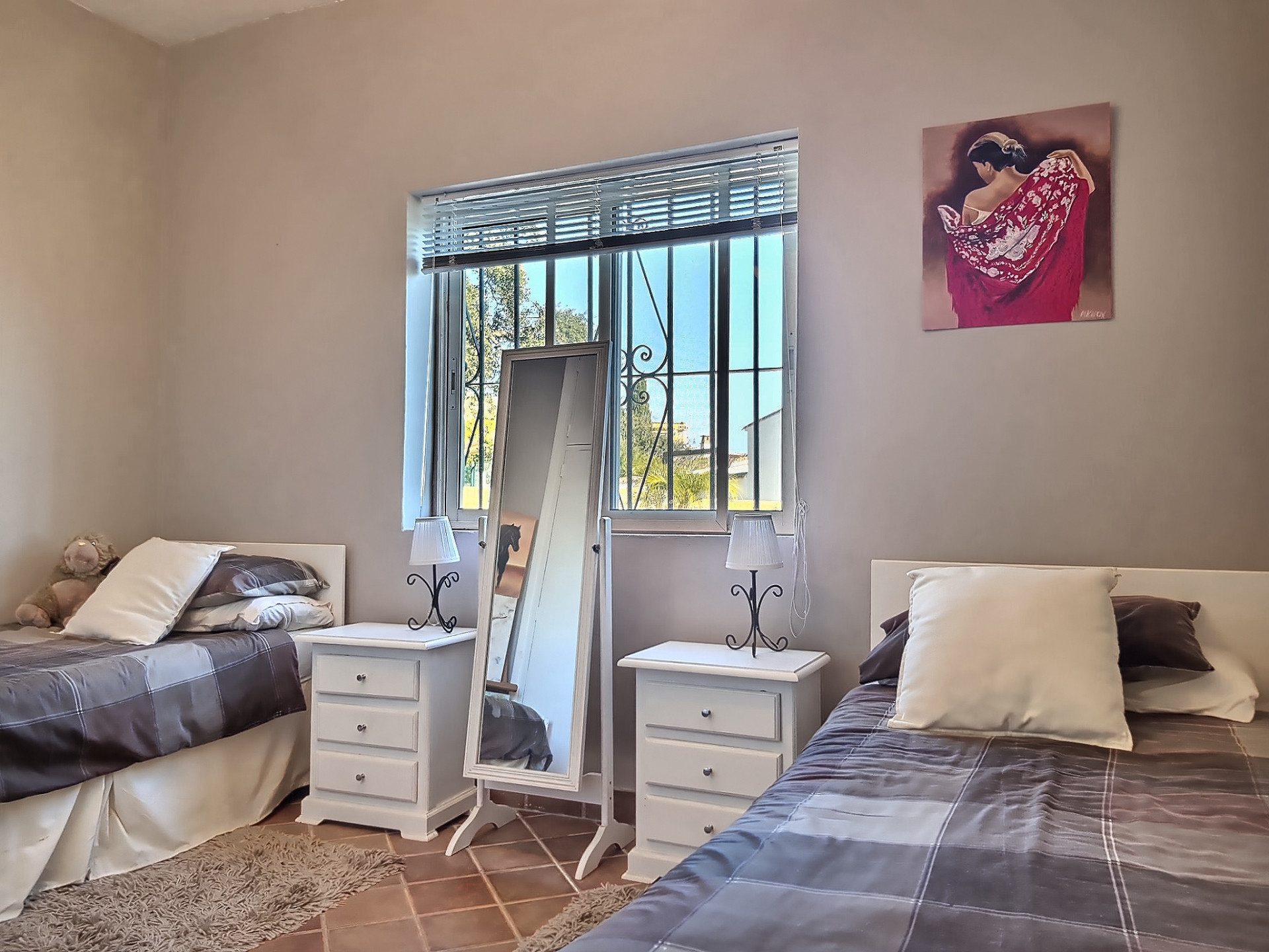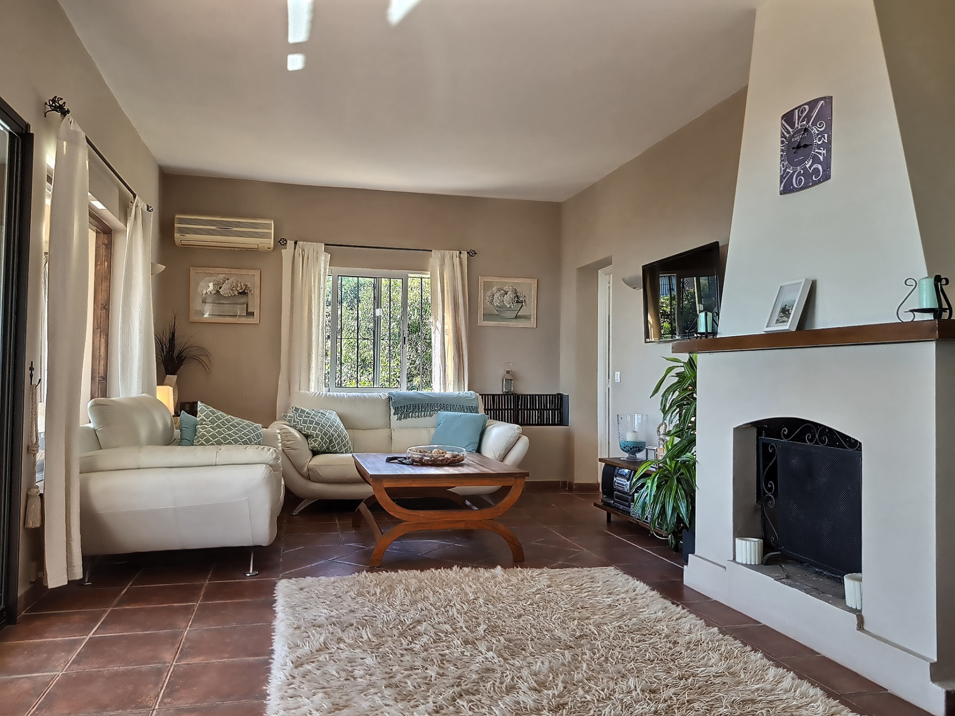 The main villa is all on one level with three good-sized bedrooms and two bathrooms with one being ensuite. The kitchen is large and spacious with rustic with wooden beams on the ceiling. Whilst the villa dates back to 1968, it has been refurbished and updated, melding the best between traditional features and modern comforts, such as fitted wardrobes, air-conditioning and heating etc..