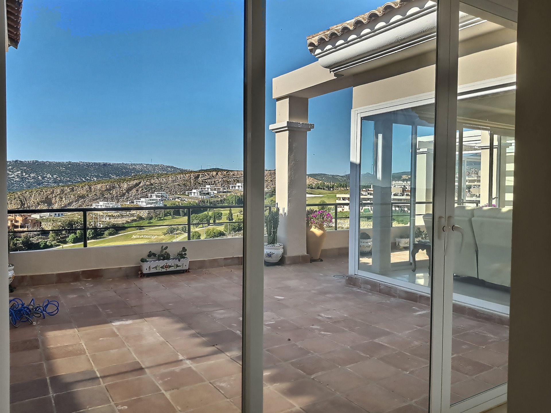 The penthouse has a large and spacious open plan living room that overlooks the gorgeous nearby golf course of Finca Cortesin. The dining room has amazing views of the communal swimming pool and out over the sea. The large and light-filled master bedroom has an en-suite bathroom with a Jacuzzi bath.